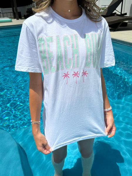 Embrace the summer vibes with the Beach Bum T-Shirt from Lily's Loft! This stylish and comfortable t-shirt features a fun "Beach Bum" graphic with palm tree accents, perfect for beach days or casual outings. Made from soft, breathable fabric, it keeps you cool and relaxed under the sun. The classic white color and trendy design make it easy to pair with any outfit, whether you're heading to the pool, the beach, or just enjoying a sunny day out. Show off your love for the beach lifestyle with this must-have summer essential from Lily's Loft!